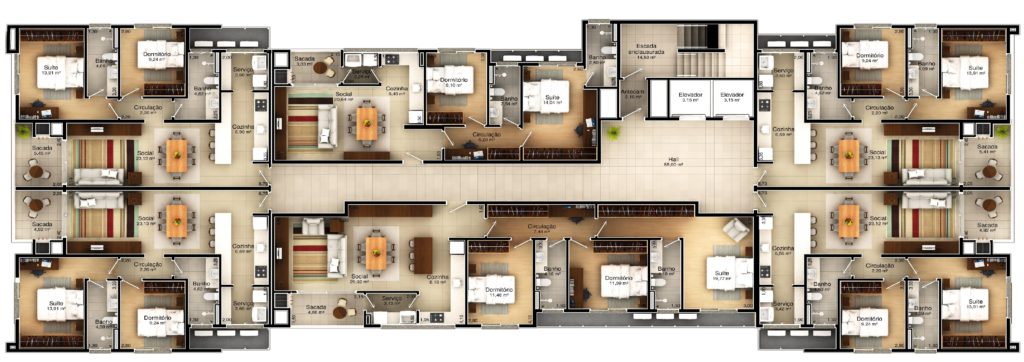 Apartamentos de 2 e 3 quartos com suítes construídos com acabamentos primorosos.